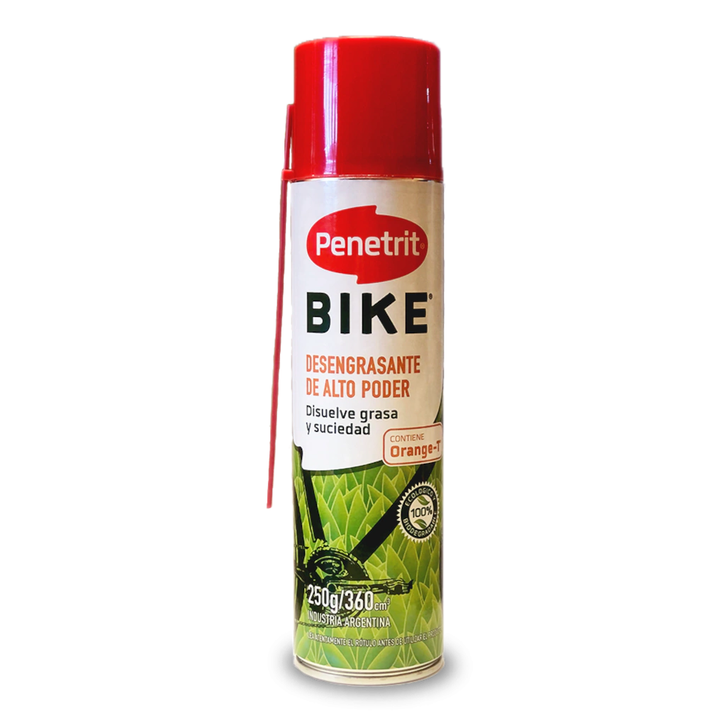 Limpiador desengrasante ecológico altamente efectivo, diseñado para disolver y remover de forma segura el aceite o la grasa acumulada en el cuadro y en todos los componentes del sistema de transmisión.